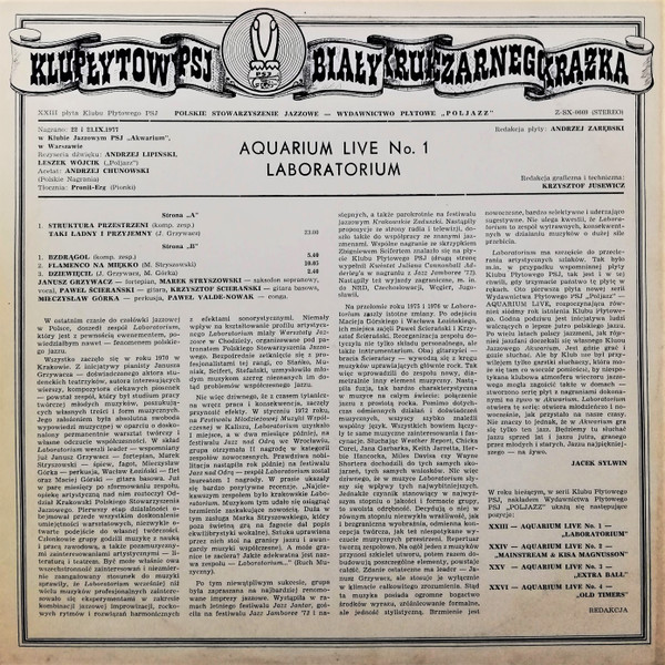 Nagrano 22 i 23.IX.1977r. w Klubie Jazzowym "Akwarium"w Warszawie.