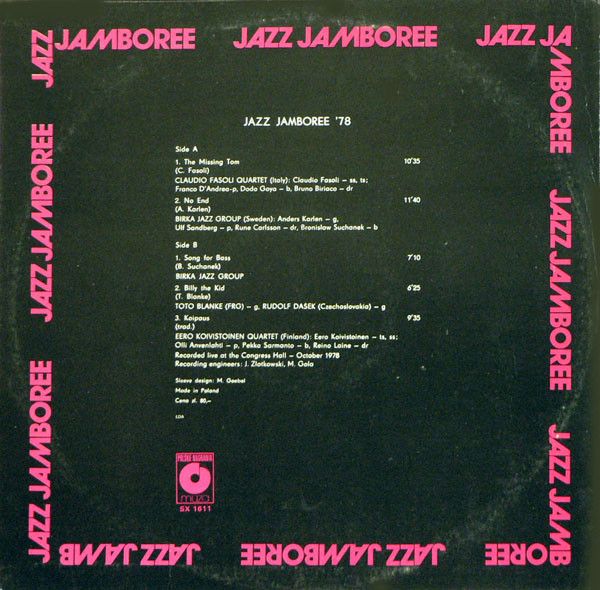 Claudio Fasoli Quartet: Claudio Fasoli, saksofon ; Franco D'Andrea, pianino ; Dodo Goya, bas ; Bruno Biriaco, perkusja. Birka Jazz Group: Anders Karlen, gitara ; Ulf Sandberg, pianino ; Rune Carlsson, perkusja ; Bronisław Suchanek, bas. Eero Koivistoinen Quartet: Eero Koivistoinen, saksofon ; Olli Anvenlahti, pianino ; Pekka Sarmanto, bas ; Reino Laine, perkusja.