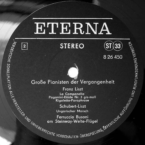 Polonaise E-dur (10:43) ; Norma, Fantasie (12:48) ; La Campanella, Paganini-Etüde Nr. 3 gis-moll (4:48) ; Rigoletto-Paraphrase (7:04) ; Ungarischer Marsch (5:30).