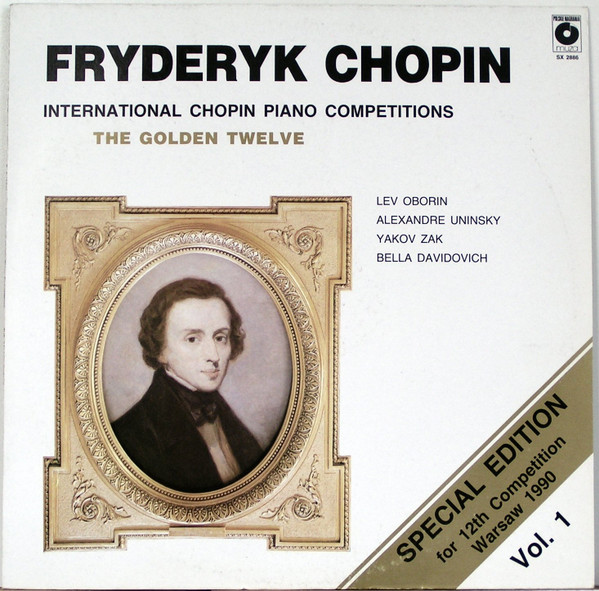 Etude In E Flat Minor Op. 10 No. 6 (3:09) ; Etude in F minor Op. 25 No. 2 (1:19) ; Etude In F Major Op. 25 No. 3 (1:36) ; Etude In E Minor Op. 25 No. 5 (3:05) / Lew Oborin. Nocturne In F Sharp Major Op. 15 No. 2 (3:19) ; Etude In G Flat Major Op. 10 No. 5 (1:37) ; Mazurka In F Sharp Minor Op. 6 No. 1 (1:39) ; Mazurka In C Sharp Minor Op. 63 No. 3 (1:53) ; Waltz In G Flat Major Op. Posth. 70 No. 1 (2:22) / Alexandre Uniński. Grande Valse Brillante In F Major Op. 34 No. 3 (1:59) ; Waltz In B Minor Op. Posth. 69 No. 3 (3:00) ; Mazurka In C Sharp Minor Op. 63 Nr 3 (1:59) ; Mazurka In C Minor Op. 30 No. 1 (1:35) / Jakov Zak. Trois Ecossaises Op. Posth. 72 Nos. 3-5 (2:10) ; Scherzo no. 4 E Major Op. 54 (10:00) / Bella Dawidowich.